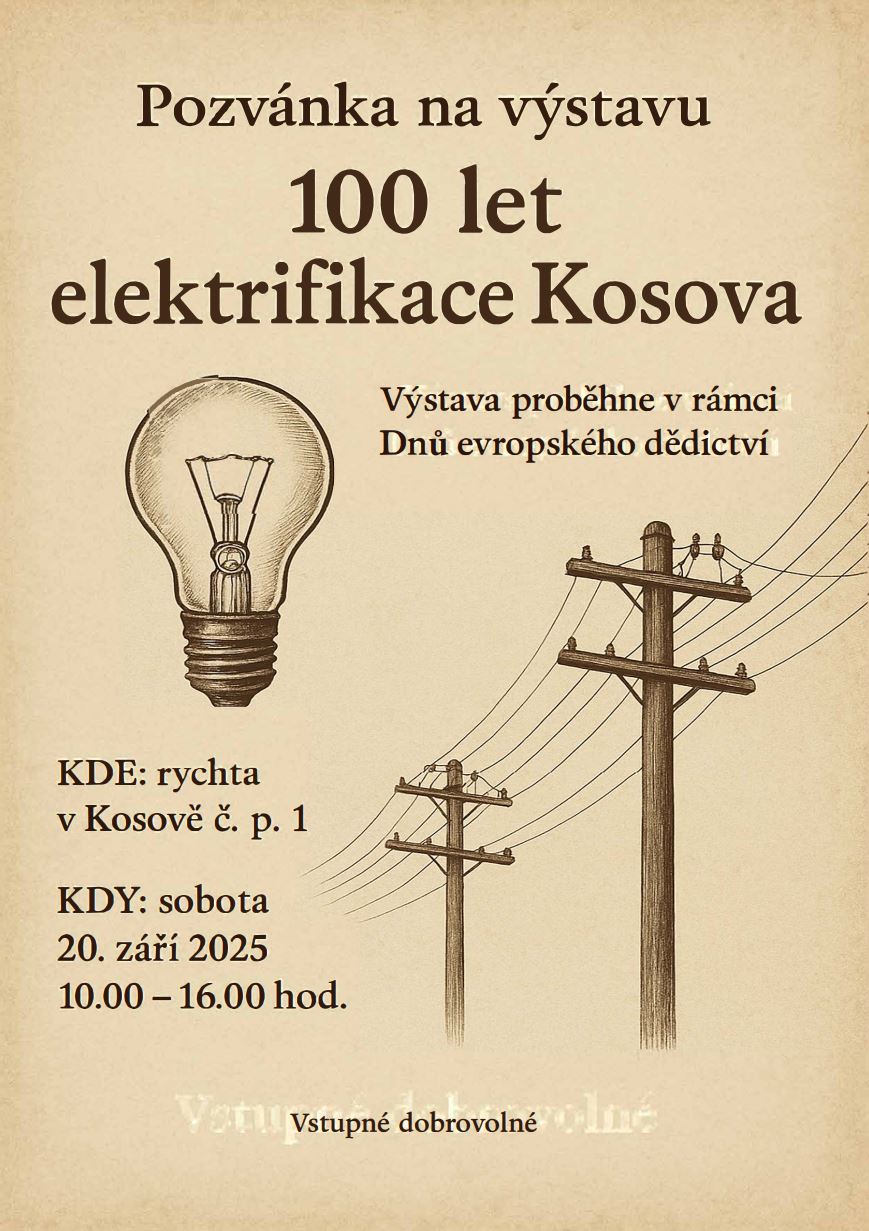 V pamětní knize obce Kosov se za rok 1925 kronikář zmiňuje pouze o jedné události, avšak pro obyvatele obce zcela zásadní. Uvádím doslovný přepis: „V roku 1925 podala obec Kosov v hodinu dvanáctou žádost na stavbu elektrické sítě. Jednání toho zúčastnil se Jan Soják jako starosta obce a Jan Vaňourek, rol. č. 21. Jednání toto vyvolalo v obci […]
